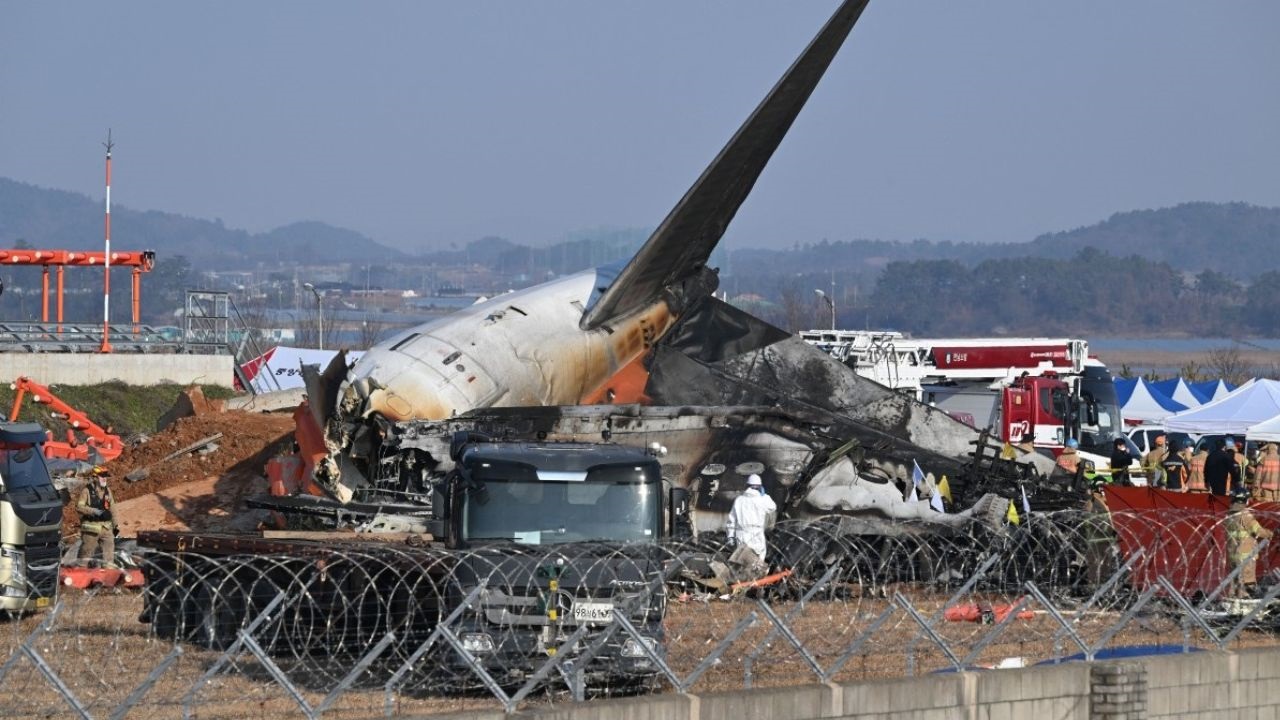 Des images diffusées par les chaînes de télévision sud-coréennes montrent de nombreux véhicules des services d'urgence et des dizaines de pompiers s'affairer autour de la carcasse de l'avion intégralement calcinée à l'exception de la queue, et évacuant sur des civières des corps enveloppés dans des linceuls bleus.