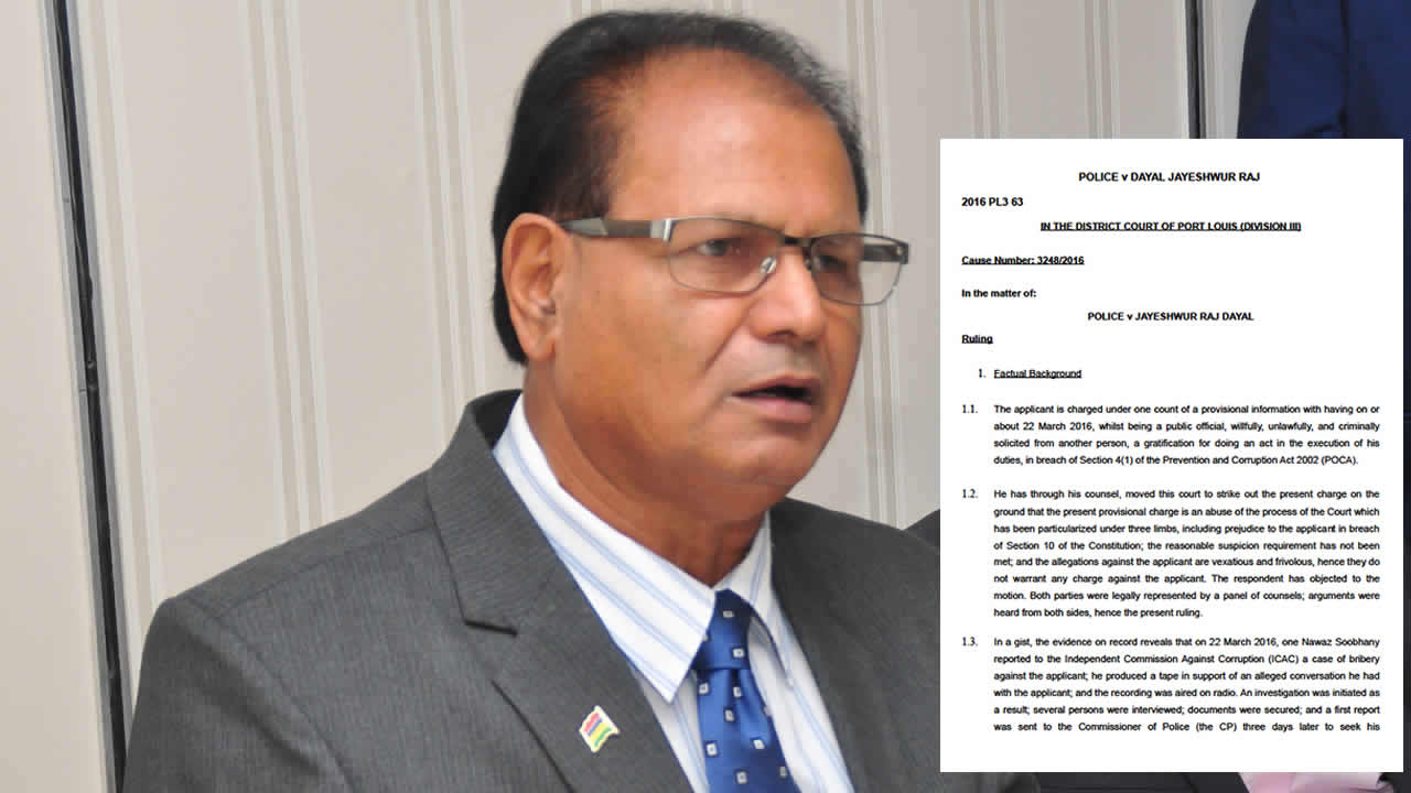 « I am satisfied that the provisional charge is serving its purpose of bringing the applicant [Raj Dayal] under the judicial supervision of the Court. This Court is therefore not ready to exercise its inherent powers to strike out the provisional charge. The motion made on behalf of the applicant is therefore set aside », affirme la magistrate Adila Hamuth du tribunal de Port-Louis dans son « ruling » rendu mercredi 27 avril.
