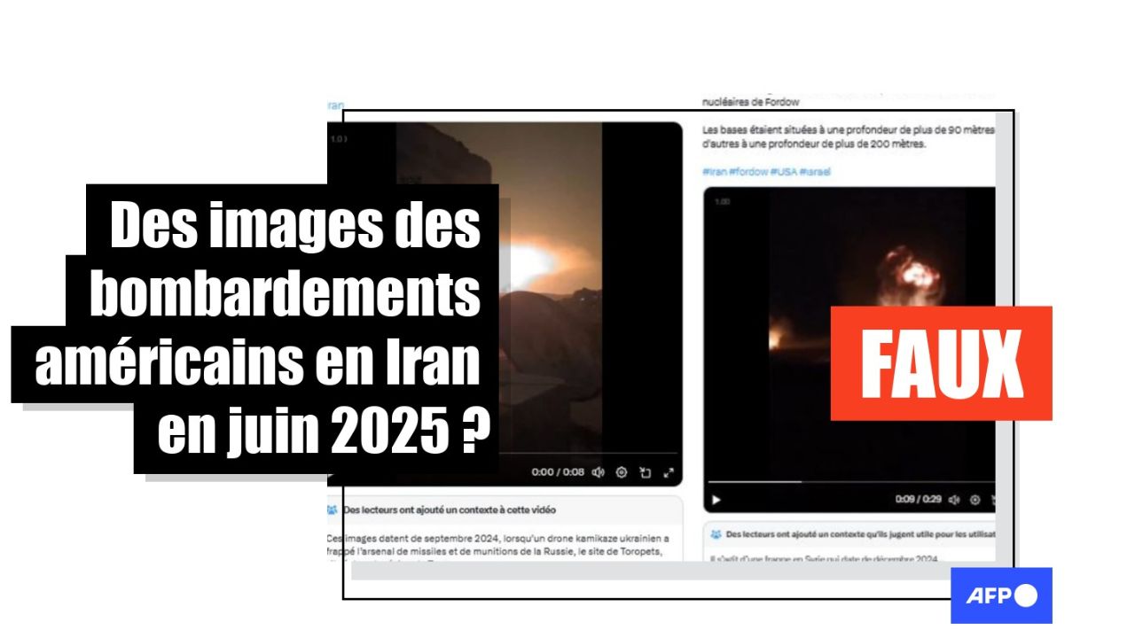 Le 13 juin, Israël a lancé une attaque de grande ampleur sur l'Iran, avec l'objectif affiché d'empêcher ce pays de se munir de l'arme atomique, puis les États-Unis ont frappé le 22 juin les installations nucléaires iraniennes. Sur les réseaux sociaux, de nombreuses images sorties de leur contexte sont présentées comme des illustrations de conflit. Deux vidéos d'explosions impressionnantes ont par exemple été diffusées avec des légendes assurant qu'il s'agirait d'images des frappes américaines. Mais c'est faux : ces deux vidéos sont anciennes et non liées aux bombardements menés par les États-Unis : l'une montre une frappe israélienne en Syrie en décembre 2024 et l'autre un bombardement ukrainien en Russie en septembre 2024.