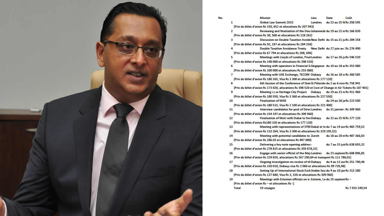Alors qu’il occupait le fauteuil de ministre des Services Financiers et de la Bonne gouvernance en 2015 et en 2016, Roshi Bhadain a effectué 19 missions à l’étranger. Ces voyages ont coûté environ Rs 7,9 millions à l’État.