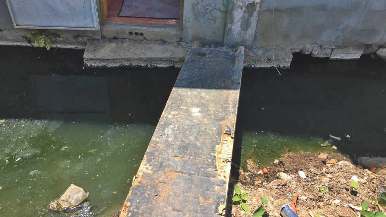 Cela fait des lustres qu’une eau putride stagne dans sa cour. Elle a multiplié les démarches auprès des autorités, mais la situation ne s’est pas améliorée.